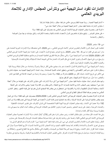 ﻰﻠﻋ ةدﺣﺗﻣﻟا ﺔﯾﺑرﻌﻟا تارﺎﻣﻹا ﺔﻟود ﮫﺗﻓﺎﺿﺗﺳا يذﻟا ،2025 ﻲﺑد – ﻲﻣﻟﺎﻌﻟا يدﯾرﺑﻟا دﺎﺣﺗﻻا رﻣﺗؤﻣﻟ نﯾرﺷﻌﻟاو ﺔﻧﻣﺎﺛﻟا ةرودﻟا لﺎﻣﻋأ موﯾﻟا تﻣﺗﺗﺧا