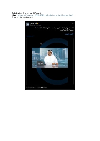 Publication: X – Akhbar Al Emarat Link: يبد ةيجيتارتسا"ىمسم تحت ..2029 -2026 ةرتفلل يملاعلا يديربلا داحتلاا ةيجيتارتسا دامتعا" Date: 22 September 2025