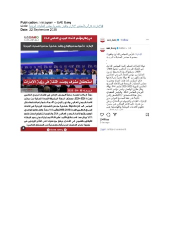 Publication: Instagram – UAE Barq Link: ةيديربلا تايلمعلا سلجم ةيوضعب زوفتو يرادلإا سلجملا سأرتت تاراملإا# Date: 22 September 2025