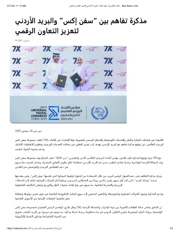 9/17/25, 11:10 AM ﻲﻣﻗرﻟا نوﺎﻌﺗﻟا زﯾزﻌﺗﻟ ﻲﻧدرﻷا دﯾرﺑﻟاو "سﻛإ نﻔﺳ" نﯾﺑ مھﺎﻔﺗ ةرﻛذﻣ - Nas News UAE