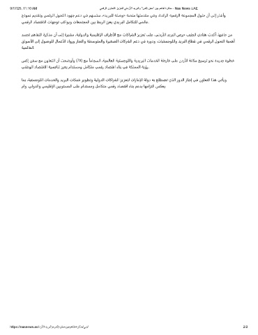 9/17/25, 11:10 AM ﻲﻣﻗرﻟا نوﺎﻌﺗﻟا زﯾزﻌﺗﻟ ﻲﻧدرﻷا دﯾرﺑﻟاو "سﻛإ نﻔﺳ" نﯾﺑ مھﺎﻔﺗ ةرﻛذﻣ - Nas News UAE