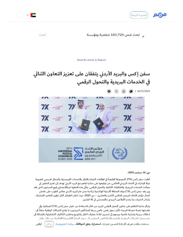 في نوﺎﻌﺘﻟا ﺰﻳزﻌﺗ لىإ فﺪﻬﺗ نيدرﻷا ﺪﻳرﺒﻟا ﻊﻣ ﻢﻫﺎﻔﺗ ةﺮﻛﺬﻣ ﻰﻠﻋ ﺎﻬﻌﻴﻗﻮﺗ ﻦﻋ ،ﻲﻤﻟﺎﻌﻟا يﺪﻳرﺒﻟا دﺎﺤﺗﻻا في تارﺎﻣﻹا ﺔﻟود