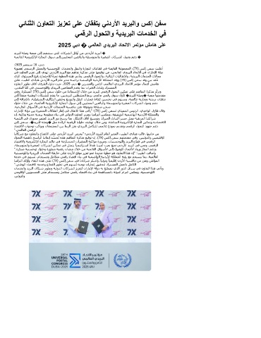 ﻲﻓ نوﺎﻌﺘﻟا ﺰﻳﺰﻌﺗ ﻰﻟإ فﺪﮫﺗ ﻲﻧدرﻷا ﺪﻳﺮﺒﻟا ﻊﻣ ﻢھﺎﻔﺗ ةﺮﻛﺬﻣ ﻰﻠﻋ ﺎﮫﻌﯿﻗﻮﺗ ﻦﻋ ،ﻲﻤﻟﺎﻌﻟا يﺪﻳﺮﺒﻟا دﺎﺤﺗﻻا ﻲﻓ تارﺎﻣﻹا ﺔﻟود