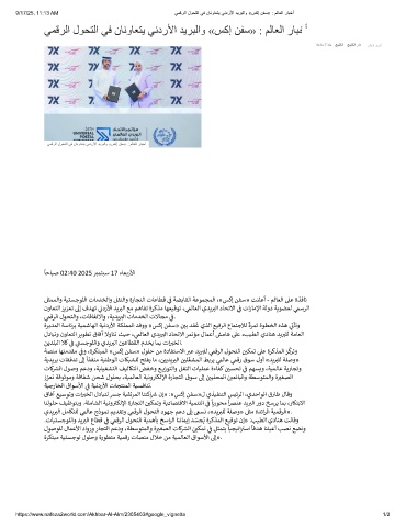 9/17/25, 11:13 AM ﻲﻣﻗرﻟا لوﺣﺗﻟا ﻲﻓ نﺎﻧوﺎﻌﺗﯾ ﻲﻧدرﻷا دﯾرﺑﻟاو «سﻛإ نﻔﺳ» : مﻟﺎﻌﻟا رﺎﺑﺧأ
