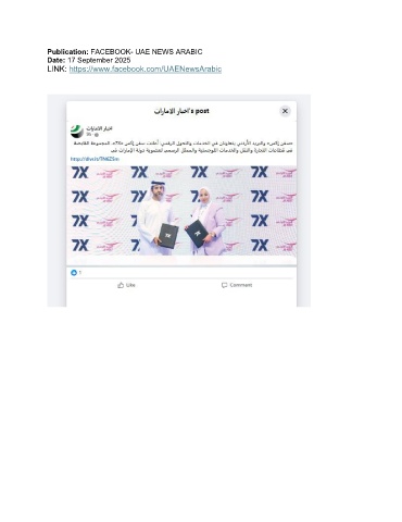 Publication: FACEBOOK- UAE NEWS ARABIC Date: 17 September 2025 LINK: https://www.facebook.com/UAENewsArabic