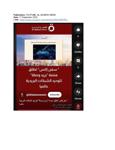 Publication: YOUTUBE- AL QAHERA NEWS Date: 17 September 2025 LINK: https://www.youtube.com/shorts/xUWs18DFFkc