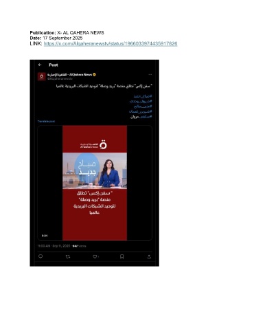 Publication: X- AL QAHERA NEWS Date: 17 September 2025 LINK: https://x.com/Alqaheranewstv/status/1966033974435917826