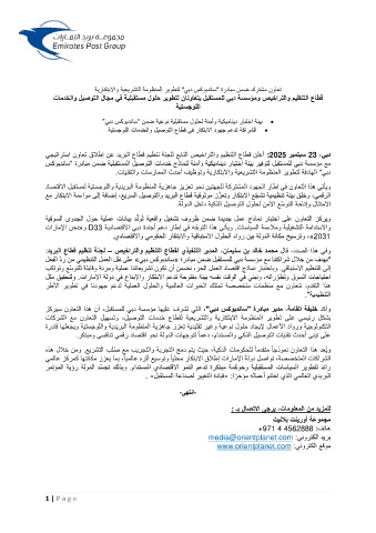 تﺎﻣدﺧﻟا و لﯾﺻوﺗﻟا  لﺎﺟﻣ ﻲﻓ  ﺔﯾﻠﺑﻘﺗﺳﻣ لوﻠﺣ  رﯾوطﺗ ﻟ نﺎﻧوﺎﻌﺗﯾ لﺑﻘﺗﺳﻣﻠﻟ ﻲﺑد ﺔﺳﺳؤﻣو  صﯾﺧ ا رﺗﻟاو مﯾظﻧﺗﻟا عﺎطﻗ