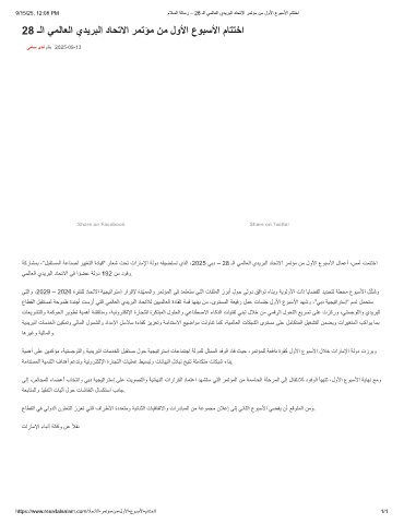 9/15/25, 12:08 PM مﻼﺳﻟا ﺔﻟﺎﺳر – 28 ـﻟا ﻲﻣﻟﺎﻌﻟا يدﯾرﺑﻟا دﺎﺣﺗﻻا رﻣﺗؤﻣ نﻣ لوﻷا عوﺑﺳﻷا مﺎﺗﺗﺧا