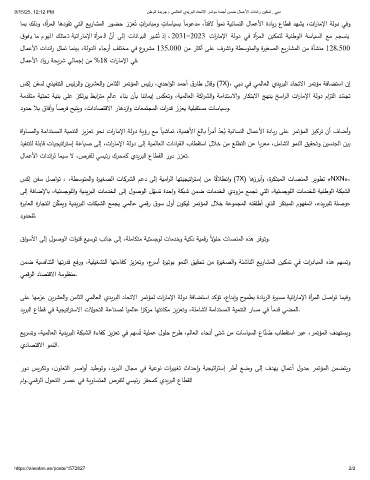 ةاوﺎسمﻟاو ﺔﻣادتسمﻟا ﺔيمنتﻟا زيزﻌﺗ وحﻧ تارﺎﻣﻹا ﺔﻟود ﺔيؤر ﻊﻣ ً ﺎيﺷﺎمﺗ ،ﺔيمﻫﻷا ﻎﻟﺎب ً ارﻣأ دﻌي ﺔيﺋﺎسنﻟا لﺎمﻋﻷا ةدﺎير ﻰﻠﻋ رمﺗؤمﻟا زيكرﺗ نأ فﺎﺿأو