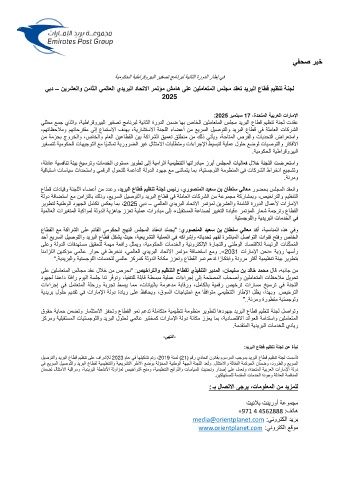 رﯾوطﺗﻟ    ﺔﯾﻧطوﻟا    دوﮭﺟﻟا    لﻣﺎﻛﺗ     سﻛﻌﯾ    ﺎﻣﺑ  ،     2025    ﻲﺑد     –     ﻲﻣﻟﺎﻌﻟا      يدﯾرﺑﻟا    دﺎﺣﺗﻻا    رﻣﺗؤﻣﻟ    نﯾرﺷﻌﻟاو   ﺔﻧﻣﺎﺛﻟا    ةرودﻟا    لﺎﻣﻋﻷ    تارﺎﻣﻹا