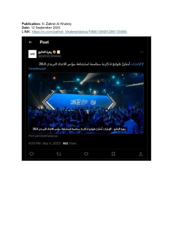 Publication: X- Zahrat Al Khaleej Date: 12 September 2025 LINK: https://x.com/zahrat_khaleej/status/1966109481286135985