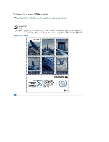 Publication: Facebook – UAE News Arabic Link: يملاعلا يديربلا داحتلاا« ةفاضتساب ءافتحا ةيراكذت عباوط ردصي تاراملإا ديرب»