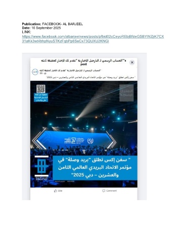 Publication: FACEBOOK- AL BARJEEL Date: 10 September 2025 LINK: https://www.facebook.com/albarjeelnews/posts/pfbid02cCeyoREbjBfdeGSBYWZjiK7CX 31aKk3wt4bhpNyuSTKzFqbPp6SeCx73QUXU2KNGl