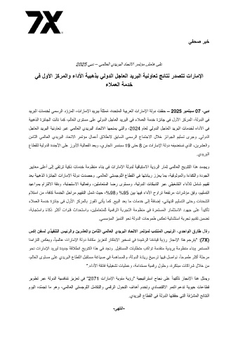 دﯾرﺑﻟا تﺎﻣدﺧﻟ ﻲﻣﺳرﻟا د ّ وزﻣﻟا ،تارﺎﻣﻹا دﯾرﺑﺑ ﺔﻠﺛﻣ ُﻣ ، ةدﺣﺗﻣﻟا ﺔﯾﺑرﻌﻟا تارﺎﻣﻹا ﺔﻟود تﻘﻘﺣ – 2025 رﺑﻣﺗﺑﺳ 07 ،ﻲﺑد
