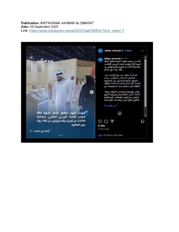 Publication: INSTAGRAM- AKHBAR AL EMARAT Date: 09 September 2025 Link: https://www.instagram.com/p/DOV2qaHDKKU/?img_index=1