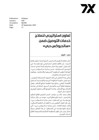 Publication: Al Bayan Country: UAE Circulation: 88,000 Date: 24 September 2025 Page: 17