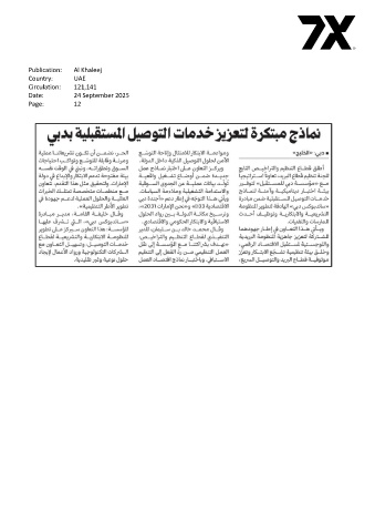 Publication: Al Khaleej Country: UAE Circulation: 121,141 Date: 24 September 2025 Page: 12