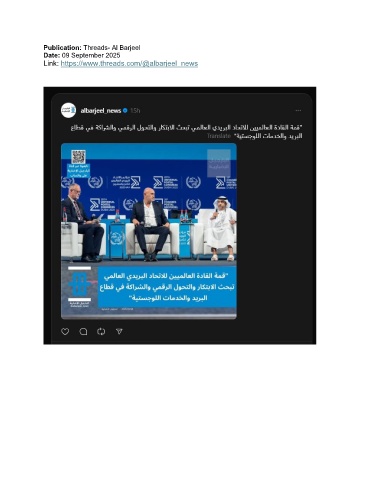 Publication: Threads- Al Barjeel Date: 09 September 2025 Link: https://www.threads.com/@albarjeel_news