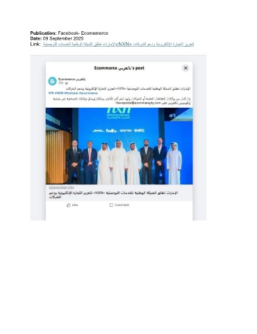 Publication: Facebook- Ecomnmerce Date: 09 September 2025 Link: ةيتسجوللا تامدخلل ةينطولا ةكبشلا قلطت تاراملإا«NXN» تاكرشلا معدو ةينورتكللإا ةراجتلا زيزعتل