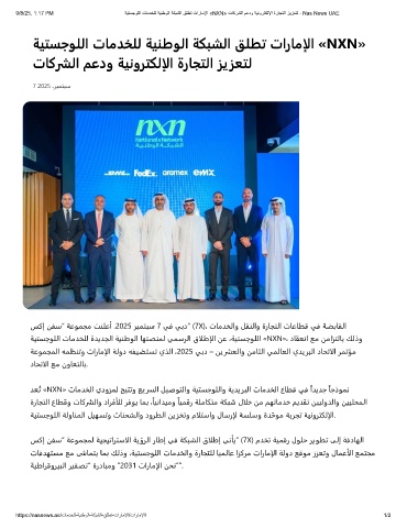 9/8/25, 1:17 PM ﺔﯾﺗﺳﺟوﻠﻟا تﺎﻣدﺧﻠﻟ ﺔﯾﻧطوﻟا ﺔﻛﺑﺷﻟا ﻖﻠطﺗ تارﺎﻣﻹا «NXN» تﺎﻛرﺷﻟا مﻋدو ﺔﯾﻧورﺗﻛﻟﻹا ةرﺎﺟﺗﻟا زﯾزﻌﺗﻟ - Nas News UAE