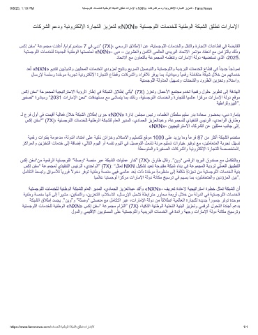 9/8/25, 1:19 PM ﺔﯾﺗﺳﺟوﻠﻟا تﺎﻣدﺧﻠﻟ ﺔﯾﻧطوﻟا ﺔﻛﺑﺷﻟا ﻖﻠطﺗ تارﺎﻣﻹا «NXN» تﺎﻛرﺷﻟا مﻋدو ﺔﯾﻧورﺗﻛﻟﻹا ةرﺎﺟﺗﻟا زﯾزﻌﺗﻟ - Fana News