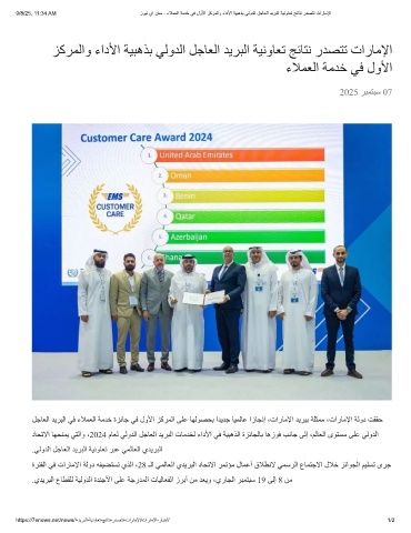 ﻞﺟﺎﻌﻟا ﺪﯾﺮﺒﻟا ﻲﻓ ءﻼﻤﻌﻟا ﺔﻣﺪﺧ ةﺰﺋﺎﺟ ﻲﻓ لوﻷا ﺰﻛﺮﻤﻟا ﻰﻠﻋ ﺎﮭﻟﻮﺼﺤﺑ اﺪﯾﺪﺟ ﺎﯿﻤﻟﺎﻋ ازﺎﺠﻧإ ،تارﺎﻣﻹا ﺪﯾﺮﺒﺑ ﺔﻠﺜﻤﻣ ،تارﺎﻣﻹا ﺔﻟود ﺖﻘﻘﺣ