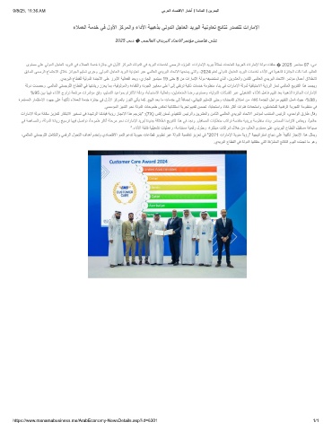 ىوﺗﺳﻣ ﻰﻠﻋ ﻲﻟودﻟا لﺟﺎﻌﻟا دﯾرﺑﻟا ﻲﻓ ءﻼﻣﻌﻟا ﺔﻣدﺧ ةزﺋﺎﺟ ﻲﻓ لوﻷا زﻛرﻣﻟا ،ﺔﻟودﻟا ﻲﻓ دﯾرﺑﻟا تﺎﻣدﺧﻟ ﻲﻣﺳرﻟا د ّ وزﻣﻟا ،تارﺎﻣﻹا دﯾرﺑﺑ ً ﺔﻠﺛﻣُﻣ ،ةدﺣﺗﻣﻟا ﺔﯾﺑرﻌﻟا تارﺎﻣﻹا ﺔﻟود تﻘﻘﺣ � 2025 رﺑﻣﺗﺑﺳ 07 ،ﻲﺑد