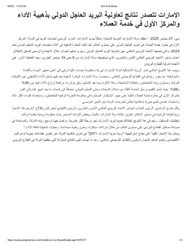زﻛرﻣﻟا ،ﺔﻟودﻟا ﻲﻓ دﯾرﺑﻟا تﺎﻣدﺧﻟ ﻲﻣﺳرﻟا د ّ وزﻣﻟا ،تارﺎﻣﻹا دﯾرﺑﺑ ﺔﻠﺛﻣُﻣ ،ةدﺣﺗﻣﻟا ﺔﯾﺑرﻌﻟا تارﺎﻣﻹا ﺔﻟود تﻘﻘﺣ – 2025 رﺑﻣﺗﺑﺳ 07 ،ﻲﺑد
