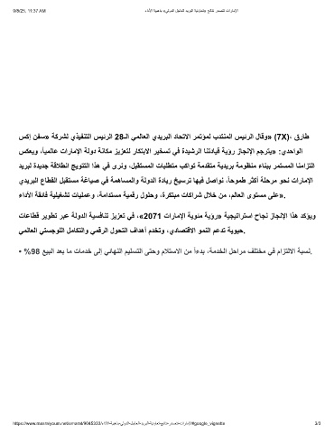 سﻛﻌﯾو ،ًﺎﯾﻣﻟﺎﻋ تارﺎﻣﻹا ﺔﻟود ﺔﻧﺎﻛﻣ زﯾزﻌﺗﻟ رﺎﻛﺗﺑﻻا رﯾﺧﺳﺗ ﻲﻓ ةدﯾﺷرﻟا ﺎﻧﺗدﺎﯾﻗ ﺔﯾؤر زﺎﺟﻧﻹا مﺟرﺗﯾ» :يدﺣاوﻟا