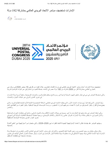 9/4/25, 9:57 AM ﺔﻟود 192 ﺔﻛرﺎﺷﻣﺑ ﻲﻣﻟﺎﻌﻟا يدﯾرﺑﻟا دﺎﺣﺗﻻا رﻣﺗؤﻣ فﯾﺿﺗﺳﺗ تارﺎﻣﻹا