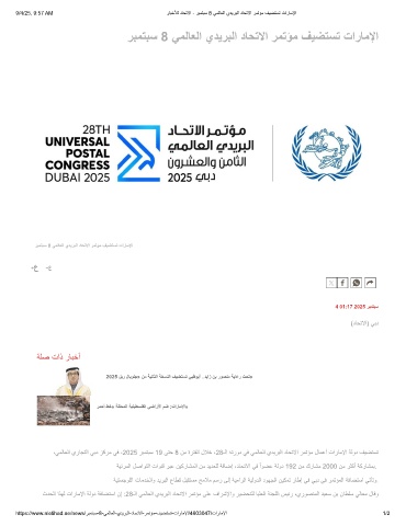 https://www.aletihad.ae/news/رﺑﻣﺗﺑﺳ-8-ﻲﻣﻟﺎﻌﻟا-يدﯾرﺑﻟا-دﺎﺣﺗﻻا-رﻣﺗؤﻣ-فﯾﺿﺗﺳﺗ-تارﺎﻣﻹا/4603047/تارﺎﻣﻹا 1/2