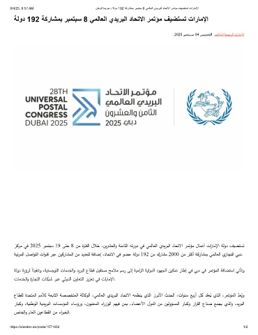 9/4/25, 9:57 AM نطوﻟا ةدﯾرﺟ › ﺔﻟود 192 ﺔﻛرﺎﺷﻣﺑ رﺑﻣﺗﺑﺳ 8 ﻲﻣﻟﺎﻌﻟا يدﯾرﺑﻟا دﺎﺣﺗﻻا رﻣﺗؤﻣ فﯾﺿﺗﺳﺗ تارﺎﻣﻹا