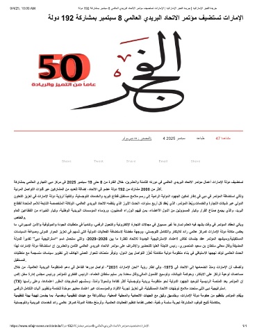 9/4/25, 10:00 AM ﺔﻟود 192 ﺔﻛرﺎﺷﻣﺑ رﺑﻣﺗﺑﺳ 8 ﻲﻣﻟﺎﻌﻟا يدﯾرﺑﻟا دﺎﺣﺗﻻا رﻣﺗؤﻣ فﯾﺿﺗﺳﺗ تارﺎﻣﻹا | ﮫﯾﺗارﺎﻣﻹا رﺟﻔﻟا ةدﯾرﺟ | ﮫﯾﺗارﺎﻣﻹا رﺟﻔﻟا ةدﯾرﺟ