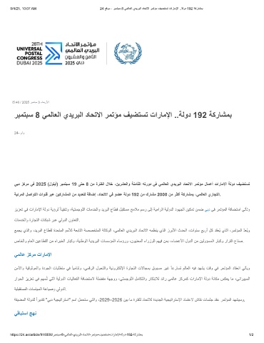 9/4/25, 10:07 AM 24 ﻊﻗوﻣ - رﺑﻣﺗﺑﺳ 8 ﻲﻣﻟﺎﻌﻟا يدﯾرﺑﻟا دﺎﺣﺗﻻا رﻣﺗؤﻣ فﯾﺿﺗﺳﺗ تارﺎﻣﻹا ..ﺔﻟود 192 ﺔﻛرﺎﺷﻣﺑ