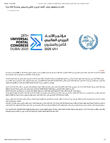 9/4/25, 10:10 AM 7 تارﺎﻣﻻا | لﺎﻣﻋا و دﺎﺻﺗﻗا | ﺔﻟود 192 ﺔﻛرﺎﺷﻣﺑ رﺑﻣﺗﺑﺳ 8 ﻲﻣﻟﺎﻌﻟا يدﯾرﺑﻟا دﺎﺣﺗﻻا رﻣﺗؤﻣ فﯾﺿﺗﺳﺗ تارﺎﻣﻹا