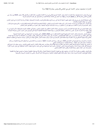 9/4/25, 10:11 AM ﺔﻟود 192 ﺔﻛرﺎﺷﻣﺑ رﺑﻣﺗﺑﺳ 8 ﻲﻣﻟﺎﻌﻟا يدﯾرﺑﻟا دﺎﺣﺗﻻا رﻣﺗؤﻣ فﯾﺿﺗﺳﺗ تارﺎﻣﻹا - Fana News