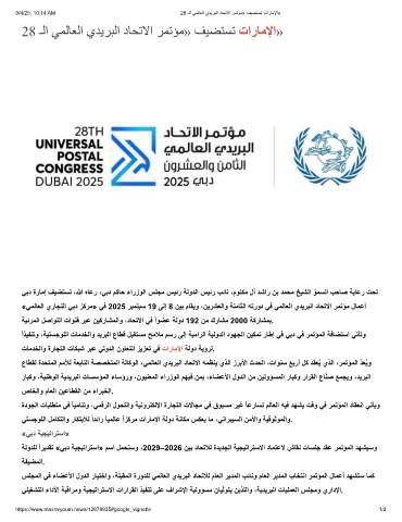 9/4/25, 10:14 AM 28 ـﻟا ﻲﻣﻟﺎﻌﻟا يدﯾرﺑﻟا دﺎﺣﺗﻻا رﻣﺗؤﻣ» فﯾﺿﺗﺳﺗ تارﺎﻣﻹا»