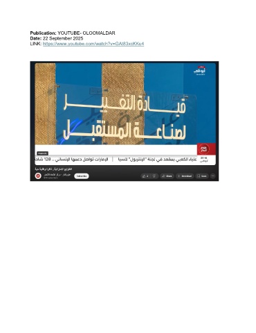 Publication: YOUTUBE- OLOOMALDAR Date: 22 September 2025 LINK: https://www.youtube.com/watch?v=GAt83xcKKu4