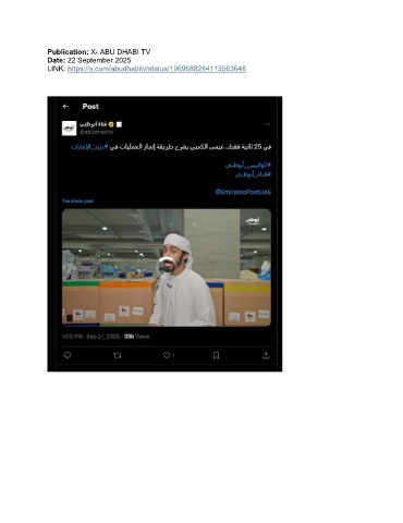 Publication: X- ABU DHABI TV Date: 22 September 2025 LINK: https://x.com/abudhabitv/status/1969688284113563648