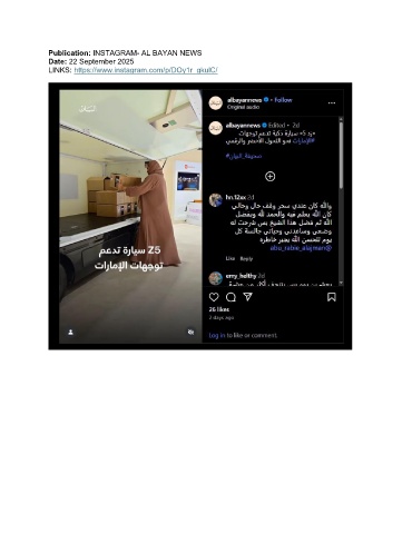 Publication: INSTAGRAM- AL BAYAN NEWS Date: 22 September 2025 LINKS: https://www.instagram.com/p/DOy1r_gkulC/