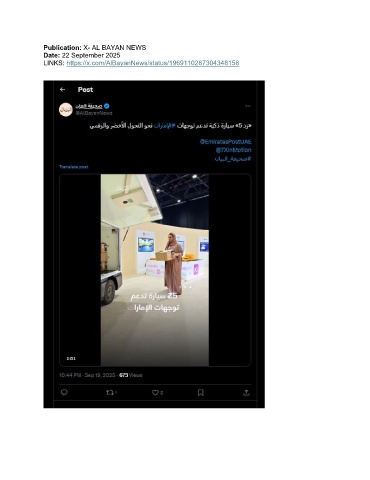 Publication: X- AL BAYAN NEWS Date: 22 September 2025 LINKS: https://x.com/AlBayanNews/status/1969110287304348158