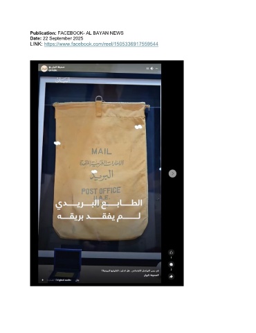 Publication: FACEBOOK- AL BAYAN NEWS Date: 22 September 2025 LINK: https://www.facebook.com/reel/1505336917559544