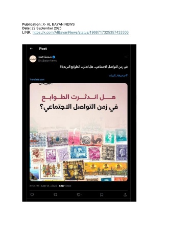 Publication: X- AL BAYAN NEWS Date: 22 September 2025 LINK: https://x.com/AlBayanNews/status/1968717325357433303