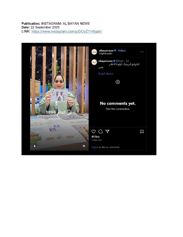 Publication: INSTAGRAM- AL BAYAN NEWS Date: 22 September 2025 LINK: https://www.instagram.com/p/DOyZYmfjgak/
