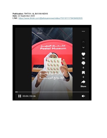 Publication: TIKTOK- AL BAYAN NEWS Date: 22 September 2025 LINK: https://www.tiktok.com/@albayannews/video/7551811179438492935