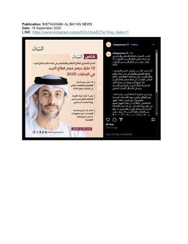 Publication: INSTAGRAM- AL BAYAN NEWS Date: 19 September 2025 LINK: https://www.instagram.com/p/DOvLboxEZ1e/?img_index=1
