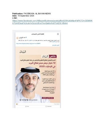 Publication: FACEBOOK- AL BAYAN NEWS Date: 19 September 2025 LINK: https://www.facebook.com/AlBayanBusiness/posts/pfbid029Ko6sMpnFdFK7Dm3EMWK b7UmE5euFkUxJe1xGccuUEvsTmcQatdvXoDTaQDLVBdml