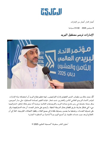 تارﺎﻣﻹا ﺔﻟود ﺔﻓﺎﻀﺘﺳا نأ ﺪﻳﺮﺒﻟا عﺎﻄﻗ ﻢﻴﻈﻨﺗ ﺔﻨﺠﻟ ‐ﺺﻴﺧاﺮﺘﻟا ةرادﻹ يﺬﻴﻔﻨﺘﻟا ﺮﻳﺪﻤﻟا ،نﺎﻤﻴﻠﺳ ﻦﺑ ﺪﻟﺎﺧ ﺪﻤﺤﻣ ﺪﻛأ