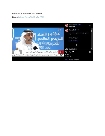 Publication: Instagram - Oloumaldar Link: يبد يف يملاعلا يديربلا داحتلاا رمتؤم قلاطنا